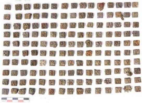 이번에 공개된 유물들은 금속활자들을 제외한 나머지는 잘게 잘라 파편으로 만들어 도기항아리 안과 옆에 묻어둔 것으로 추정된다. 또한 활자들은 대체로 온전했지만 불에 녹아 서로 엉겨 붙은 것들도 일부 확인되었다. 이들의 사용, 폐기 시점은 제작연대를 알 수 있는 유물 중 만력(萬曆) 무자(戊子)년에 제작된 소승자총이 있어 1588년 이후에 묻혔다가 다시 활용되지 못하고 오늘날까지 이어진 것으로 추정된다.