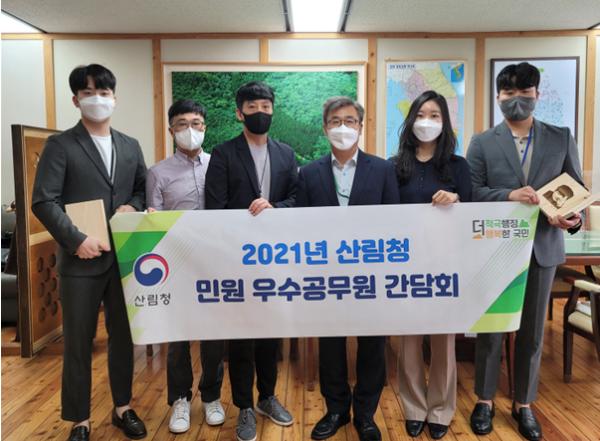 산림청은 20일 올해 2분기 대국민 민원서비스 품질향상에 이바지한 ‘민원 우수공무원’ 5명을 선정하여 포상하고, 민원처리 사례 등을 공유하는 간담회를 했다.