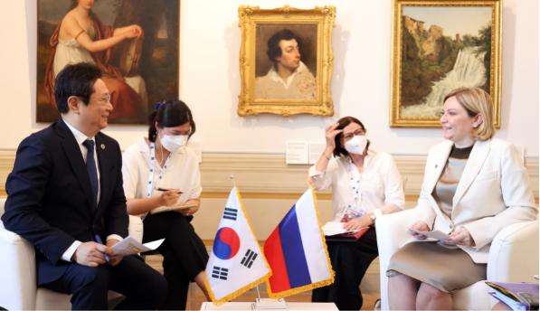 한편, 황 장관은 7월 30일, 러시아 문화부 올가 류비모바(Olga Lyubimova) 장관을 만나 양국 간 문화협력 강화 방안을 논의했다. 황 장관은 “한-러 상호 문화교류의 해(’20~’21)를 맞이해 양국은 어려움 속에서도 비대면 교류로 서로의 문화를 즐기고 작은 위안을 얻었다.”라고 평가했고, 올가 류비모바 장관은 상트페테르부르크 국제문화포럼(’21. 11. 11.~11. 13.) 주빈국 행사에 황 장관을 초청했다. 한국과 러시아는 2020년 수교 30주년을 계기로 ‘한-러 상호 문화교류의 해’를 체결한 바 있다.