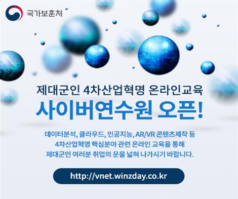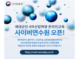 국가보훈처는 4차산업혁명 시대에 맞춰 중장기 제대군인의 취업역량을 높이기 위해 ‘제대군인 4차산업혁명 사이버연수원’을 8월부터 개설하여 운영한다고 밝혔다.