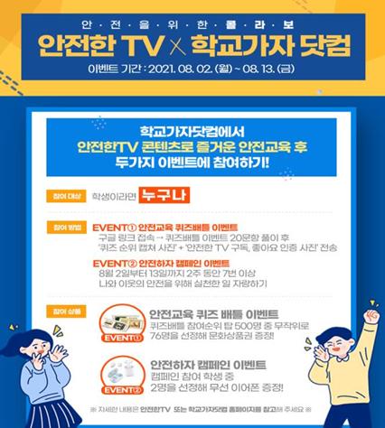 행정안전부가 운영하는 안전 전문 누리집 “안전한-TV”에서 전국 초·중·고 학생들을 대상으로 ‘안전한 여름방학 보내기’를 주제로 8월 한 달간 온라인 참여 행사를 추진한다.