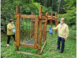 이번 점검은 사회적거리두기 연장조치에 따른 후속조치로 서부지방산림청 관내 덕유산유아숲체험원을 방문하여 마스크 착용 여부, 방문자 및 유아숲지도사 발열체크 여부, 시설물 방역 여부 등 코로나-19 방역관리 상태를 중점적으로 점검하고 유아숲체험원 놀이시설물에 대해 소독을 실시하였다.