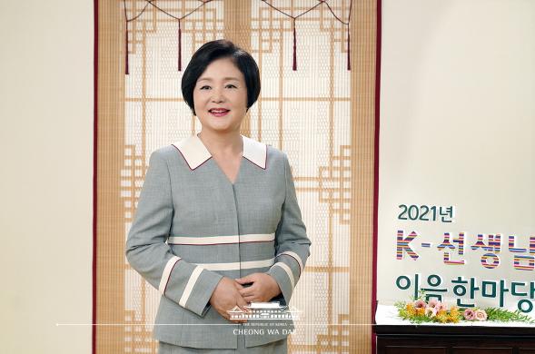 김정숙 여사는 이날 비대면으로 개최된 ‘K-선생님 이음 한마당’ 행사에 영상으로 축사를 전하며, “전 세계 초·중·고교와 세종학당에서 한국어와 한국을 가르치고 계신 선생님들과 재외동포 청소년들에게 한국인이라는 정체성과 자긍심을 심어주고 계신 선생님들께 경의를 표한다”고 말했다.