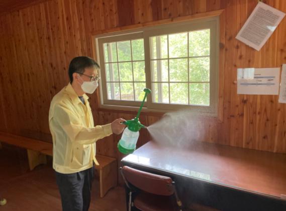 이날 동부지방산림청장은 삼척동자 유아숲체험원을 방문하여 ▲ 마스크 착용 ▲ 출입자 명부 관리 ▲ 발열 체크 등 코로나19 방역수칙 이행 실태를 점검하고 체험원 내 시설물에 대한 소독을 실시했다.