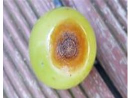 그을음점무늬병은 주로 포도가 익어가는 성숙기에 과실 표면에서 공기 통로 역할을 하는 ‘과점’을 중심으로 발생하는 병해로 과실 표면에 파리똥 같은 검정 반점이 형성된다.