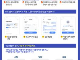 ‘토스’ 앱을 이용하는 국민이라면 예금・보험가입, 계좌개설 신청 등에 필요한 구비서류를 간편하게 스마트폰으로 발급받아 제출까지 가능해진다.