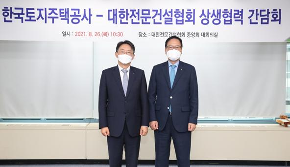 LH는 26일 서울 동작구 소재 전문건설회관에서 김현준 사장과 김영윤 대한전문건설협회장 등이 참석한 가운데, ‘공정한 건설문화 조성을 위한 상생협력 간담회’를 개최했다고 밝혔다.