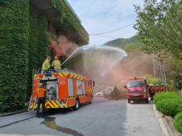 서부지방산림청 뒤 편에 위치한 유아숲체험원으로 불이 확산되는 상황을 가정하여 산불재난특수진화대 산불진화훈련도 병행 실시하였으며, 식정119안전센터에서는 소화기 작동법 안전교육을 실시하였다.