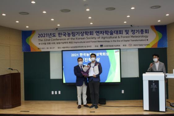 산림청 국립산림과학원은 26일에 개최한 2021년 한국농림기상학회에서 산림ICT연구센터 장근창 박사가 산림기상학 분야의 연구·개발에 크게 기여한 유공을 인정받아 ‘신진학술상’을 수상하였다고 밝혔다.