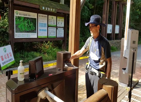 국립공원공단은 코로나19 예방을 위해 비대면 예약(QR코드) 자동확인시스템을 도입하고 손소독, 체온측정기 등을 운영한다. 또한 입장 시 체온 확인 후 ‘코로나 안심 팔찌’를 제공한다.