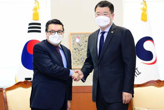 최종건 외교부 제1차관은 9.3.「후안 카이사(Juan Caiza)」 주한콜롬비아대사를 접견하여, 최근 우리나라를 국빈 방한한 '이반 두케 마르케스(Ivan Duque Marquez)' 콜롬비아 대통령의 방한 성과 및 양국 정상회담 후속 조치 등에 대해 논의하였다.