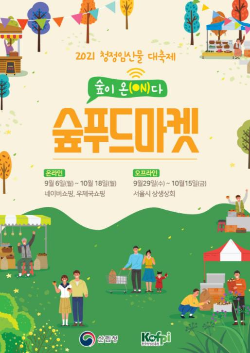 산림청은 코로나19 장기화로 임산물 판매에 어려움을 겪고 있는 임업인을 지원하고자 적극행정의 일환으로 2021 청정임산물 대축제(부제 : 숲이 온(ON)다! 숲푸드 마켓)를 6일부터 개최한다.