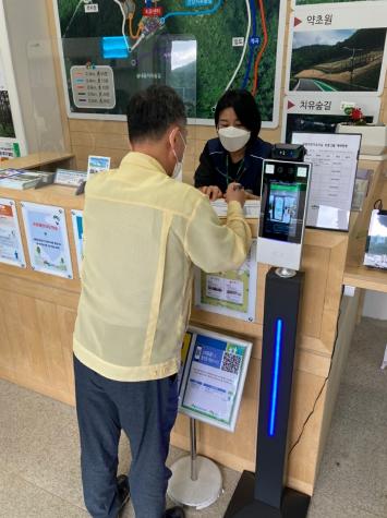 중부지방산림청은 2일 국립제천치유의숲을 찾아 코로나19 방역실태를 점검하는 등 산림다중이용시설 방역강화에 나섰다.