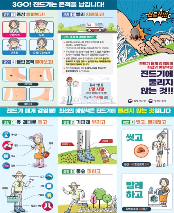농촌진흥청은 질병관리청과 함께 2017년부터 농업인 대상으로 진드기 매개 감염병 예방교육·홍보를 강화하고 있으며 영농현장점검 및 기술지원 등을 협력하여 추진하고 있다.