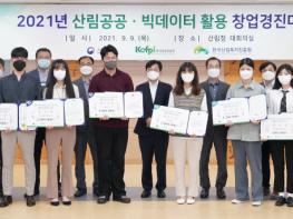 산림청은 한국임업진흥원, 한국산림복지진흥원과 함께 진행한 ‘2021년 산림공공·빅데이터 활용 창업경진대회’ 시상식을 9일 정부대전청사 17층 대회의실에서 개최했다.
