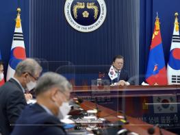 문 대통령은 “지난해 9월 유엔 총회 계기에 제안한 동북아 방역·보건 협력체에 몽골 정부가 적극 참여해 준 데 사의를 표하고, 특히 몽골은 ‘울란바타르 대화’를 통해 역내 대화에 북한을 참여시키는데 주도적 역할을 수행한 만큼, 앞으로도 적극적인 역할을 해 주기 기대한다”고 말했다.