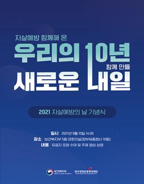 보건복지부는 한국생명존중희망재단과 함께 자살예방의 날을 맞아 9월 10일 보건복지부 5층 대회의실에서 「2021년 자살예방의 날 기념식」을 개최했다고 밝혔다.