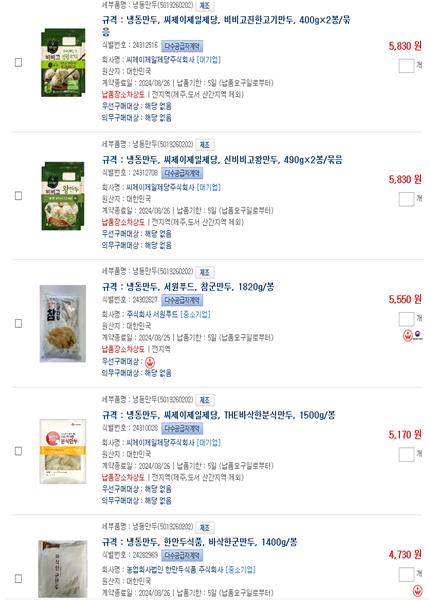 또한, ‘만두류’도 작년까지 군만두와 포자만두에 한해 입찰을 통해 일부 계약자가 공급하던 방식에서 다수 업체의 다양한 제품을 납품할 수 있게 되어 군의 선택폭이 크게 넓어지게 되었다.