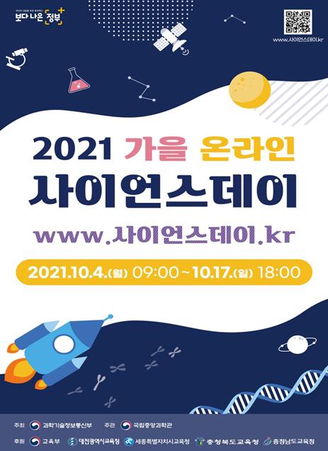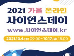 국립중앙과학관은 전 국민에게 과학에 대한 이해 제고 및 과학문화 확산을 위해「2021 가을 온라인 과학의 날(사이언스데이)」를 10월 4일 부터 10월 17일까지 개최한다고 밝혔다.