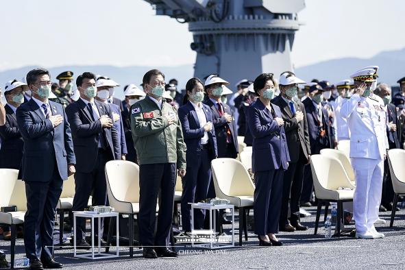 문재인 대통령 내외는 제73주년 국군의 날 기념식 후 마라도함에서 열린 국군의 날 기념 다과회에 참석했다.