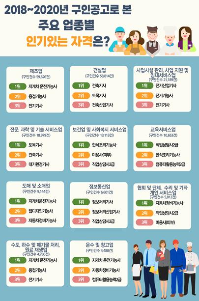 업종별로 인기가 많은 국가기술자격증은?