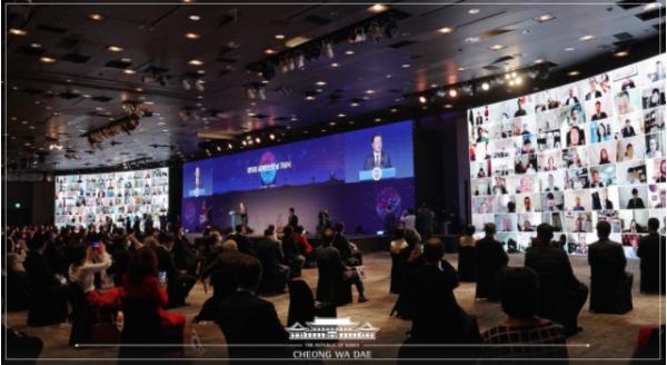 심상만 대회 공동의장은 이날 인사말을 통해 "코로나19로 인해 전 세계적으로 힘든 시기를 보내고 있어 우리 재외동포들의 삶도 간단치 않은 상황"이라고 밝힌 뒤 "이럴 때일수록 동포사회가 한마음 한뜻으로 단결해 힘든 시기를 헤쳐 나갈 수 있도록 우리 한인회장들이 앞장서서 격려하고 모범을 보이자"고 말했다. 또한, 멕시코-쿠바 이민 1세대 독립운동가인 임천택 선생의 후손이자 쿠바 1호 정부초청 장학생으로 한국에서 유학하고 있는 임대한 씨는 선조의 정신을 기리고 쿠바와 한국의 가교 역할을 다짐하는 글을 낭독하며 자리를 빛냈다.