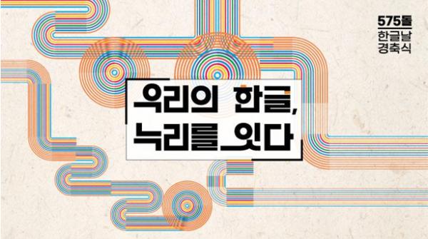 행정안전부는 오백일흔다섯돌 한글날을 맞이하여 10월 9일 오전 10시, ‘우리의 한글, 누리를 잇다’라는 주제로 한글날 경축식 행사를 사전 녹화된 영상으로 개최한다고 밝혔다.