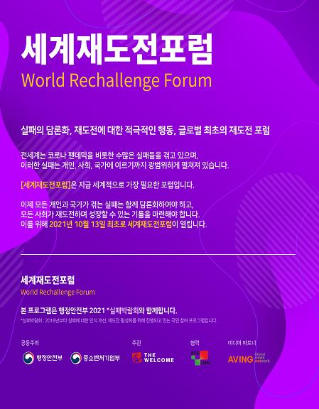 중소벤처기업부와 행정안전부는 4년 동안 추진되고 있는 실패박람회의 주요 성과를 공유하고, 국내‧외 실패 극복과 재도전 문화를 공유하는 ‘세계재도전포럼’을 10월 13일 개최한다고 밝혔다.