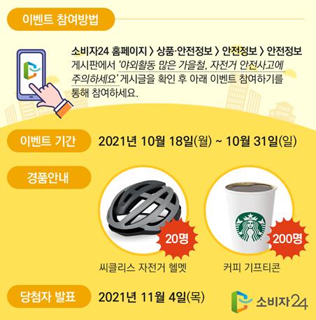 공정거래위원회와 한국소비자원은 야외 레저활동이 빈번한 가을철을 맞아 자전거 안전사고를 예방하기 위하여 안전주의보를 발령했다.