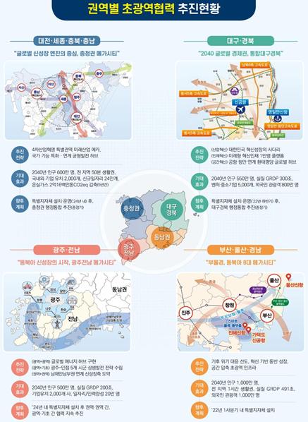 지역주민들이 초광역협력의 효과를 체감할 수 있도록 국토교통‧산업‧인재양성 등 분야별 초광역협력 촉진 정책도 도입한다.