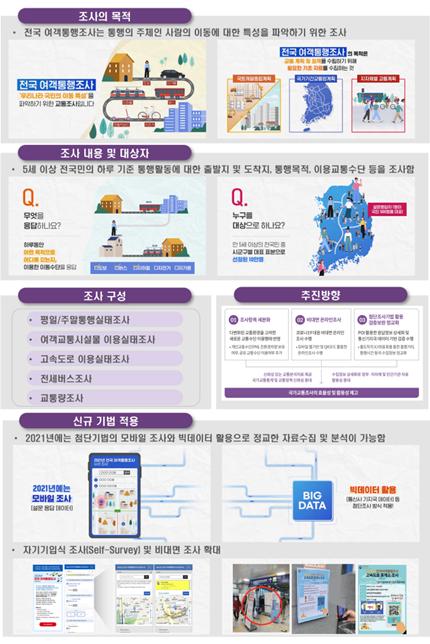 이번 조사 참여자를 대상으로 경품도 제공할 예정이며, 자세한 사항은 국토교통부 공식 유튜브 채널에서 ‘2021 전국 여객통행조사’ 영상을 참고하면 된다.