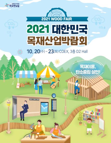 산림청은 오는 10월 20일부터 23일까지 서울 코엑스(디투(D2)홀)에서 ‘2021년 대한민국 목재산업박람회(WOOD FAIR)’를 개최한다.