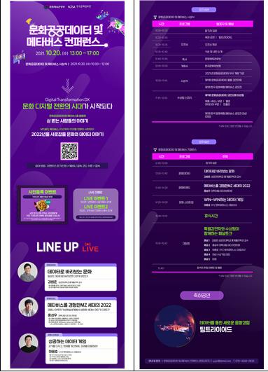 문화체육관광부는 한국문화정보원과 함께 10월 20일, ‘제9회 문화공공데이터 활용 경진대회’ 시상식과 ‘문화공공데이터 및 메타버스 학술대회(콘퍼런스)’를 온라인으로 개최한다.