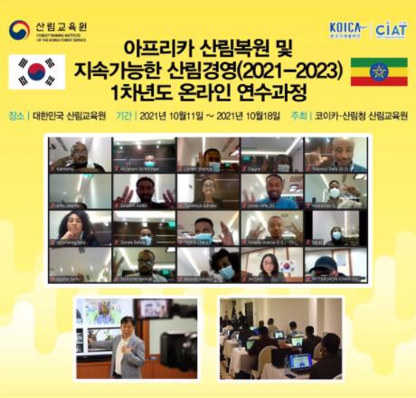 산림청 산림교육원과 KOICA(한국국제협력단)은 10월 11일 붙터 18일까지 「아프리카 산림복원 및 지속가능한 산림경영」 연수 프로그램을 개설하여 에티오피아 산림 환경,기후변화 공직자 및 전문가를 대상으로 연수를 실시했다.