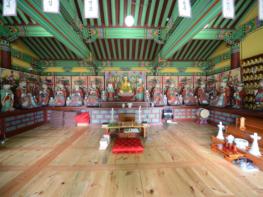 석가·다보·아미타여래 삼불상과 석가여래의 좌우협시로 문수보살과 보현보살이, 다보여래의 협시보살로 지적보살이, 아미타여래의 협시보살로 관음보살이 짝을 이룬 도상은 1665년 간행『오종범음집(五種梵音集)』에 의거한 ‘법화거불(法華擧佛)’, 즉 법화신앙 바탕의 불교의식집에 등장하는 도상을 최초로 조각한 사례라는 점에서 주목할 만하다.