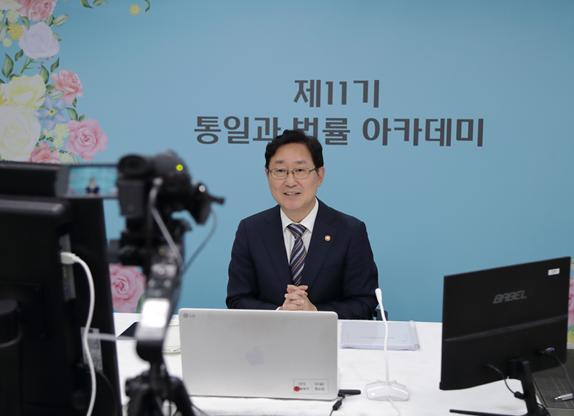 박범계 법무부 장관은 10월 25일 19시, 온라인으로 개최된 「통일과 법률 아카데미」에서 법률가 등 수강생 70여 명이 참석한 가운데 ‘대한민국의 통일과 법률가의 역할’을 주제로 강연했다.