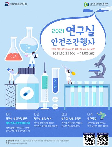 과학기술정보통신부는 10월 27일부터 11월 2일까지 ‘연구실 안전 실천, 과학기술 인재 보호’ 라는 주제로 「2021 연구실 안전주간」행사를 개최한다.