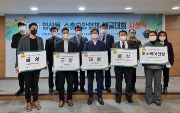 산림청이 주최하고 한국임업진흥원이 주관한 “2021년도 임산물 수출유망업체 발굴대회”는 수출 경쟁력이 있으나 역량 부족으로 해외 시장 개척에 어려움을 겪고 있는 업체들을 발굴하여 시장 진출 지원을 통한 수출 마중물 역할을 수행하기 위해 추진되었으며 1차 서면 심사와 2차 현장 및 발표평가를 거쳐 단기임산물 분야, 목재제품 분야 등 총 5개 업체가 선정되었다.