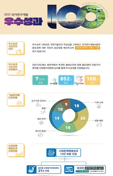 과학기술정보통신부와 한국과학기술기획평가원은「2021년 국가연구개발 우수성과 100선」을 선정하여 발표했다.