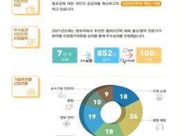 올해는 정부지원을 받아 수행한 범부처 약 7만 여 연구개발(R&D) 과제(‘20년 기준) 중, 각 부‧처‧청이 추천한 총 852건의 후보성과를 대상으로, 산‧학‧연 전문가들로 구성된 우수성과 선정평가위원회에서 질적 우수성을 평가한 후, 대국민 공개검증을 거쳐 최종 100건의 우수성과를 선정했다.