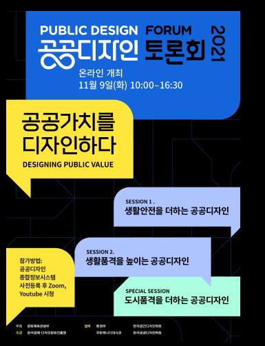 문화체육관광부는 한국공예·디자인문화진흥원과 함께 11월 9일, 오전 10시부터 ‘2021 공공디자인 토론회-공공가치를 디자인하다’를 온라인으로 개최한다.