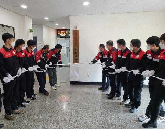 중부지방산림청은 1일, 가을철 산불조심기간(11.1∼12.15)을 맞아 산불방지대책본부 현판식을 갖고 산불방재를 위한 본격적인 비상근무에 들어갔다.