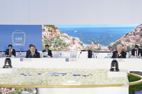 주요 20개국(G20) 정상회의 참석차 이탈리아 로마를 방문 중인 문재인 대통령은 31일(현지시간) “완전한 경제 회복을 위해 글로벌 공급망 안정이 시급하다”고 말했다.