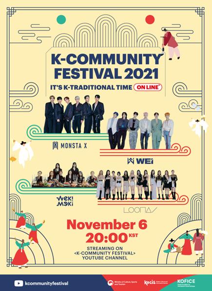 문화체육관광부 해외문화홍보원은 한국국제문화교류진흥원과 함께 11월 6일 오후 8시, ‘2021 한류 동호회와 한국문화 함께 잇기(케이-커뮤니티 페스티벌)’를 온라인으로 개최한다.