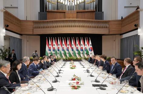 오르반 총리는 “헝가리는 미래에 대한 긍정적인 자세, 전통 유산과 미래의 혁신을 함께 가꾸고자 하는 점, 가족 중시, 교육열 등 한국과 공통점이 많다”며 “헝가리는 한국의 성공을 배우기 위해 노력해 왔는데, 오찬을 통해 양국이 향후 10년을 위한 대화를 나누길 바란다”고 말했다.