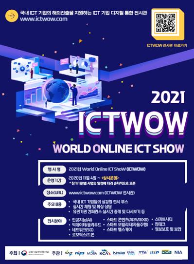 과학기술정보통신부는 국내 정보통신기술 기업의 해외 진출을 지원하기 위해 운영중인 정보통신기술 기업 디지털 통합 전시관(World Online ICT shoW, 이하 ‘ICTWOW’)을 11월 4일 새롭게 개편한다고 밝혔다.