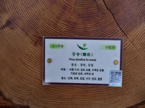 핸드폰으로 산림박물관 제1전시실의 국내산 목재표본에 부착되어 있는 큐아르 코드를 사진 촬영하면 국립수목원 국가식물종정보시스템으로 바로 연결되어 촬영된 나무에 대한 정보를 확인할 수 있다.