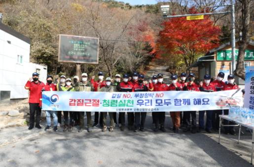 이번 캠페인은 가을철 산불조심기간(11월 1일∼12월 15일 까지)에 돌입함에 따라 입산객들에게 산불발생 예방을 위해 입산 시 주의해야 할 점, 산림 내 소각금지 등 주의를 당부했다. 또한 직장 내·외부에서 발생할 수 있는 갑질문화에 대한 갑질근절 홍보와 더불어 부정청탁 금지, 금품·향응·편의제공, 특혜 금지 등 청렴문화정착에 힘쓰겠다는 의지를 다졌다.