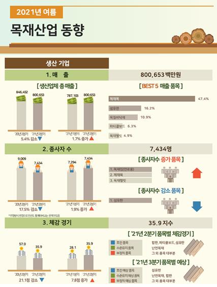 산림청은 한국임업진흥원과 함께 실시한 ‘목재산업 동향조사’를 통해 파악한 목재산업 전반에 대한 조사(모니터링) 결과를 8일 발표했다.