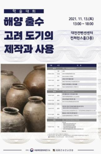 문화재청 국립해양문화재연구소와 한국중세고고학회는 오는 13일 오후 1시부터 오후 6시까지 대전컨벤션센터에서 『해양 출수 고려도기의 제작과 사용』을 주제로 학술대회를 개최한다.